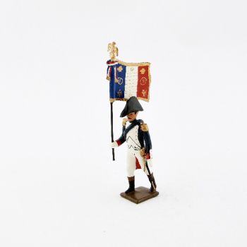 Figurine de collection au 1/35e, en alliage de plomb et d'étain, peinte à la main, représentant un drapeau des grenadiers de la garde en tenue de campagne (1814) -