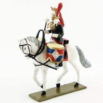 Les trompettes sont montées sur des chevaux alezans, les timbaliers sur des chevaux de robe grise.