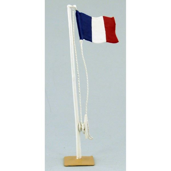 drapeau français sur mat avec drisse et taquet (h. 13,5 cm)