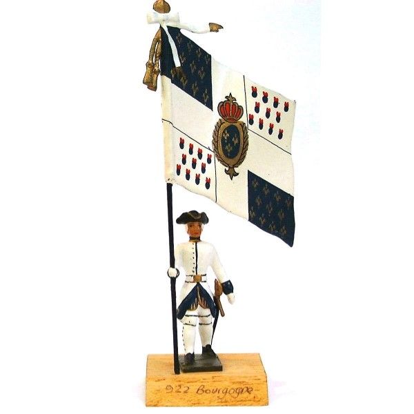 étendard du Régiment De Bourgogne (1750, Louis XV) sur socle bois