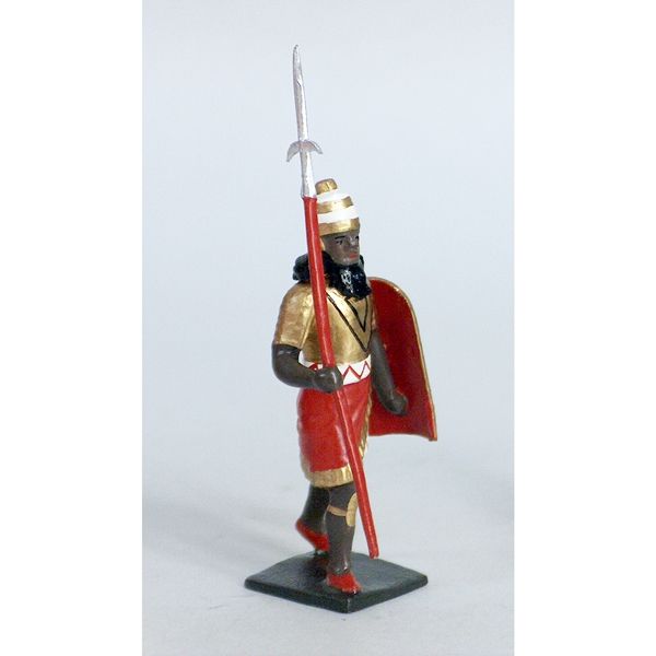 assyrien avec lance, tunique rouge et or
