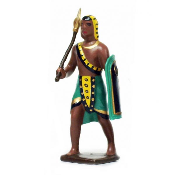 Figurine de collection au 1/35e, en alliage de plomb et d'étain, peinte à la main, représentant un égyptien avec casse tête - marron-or et bouclier