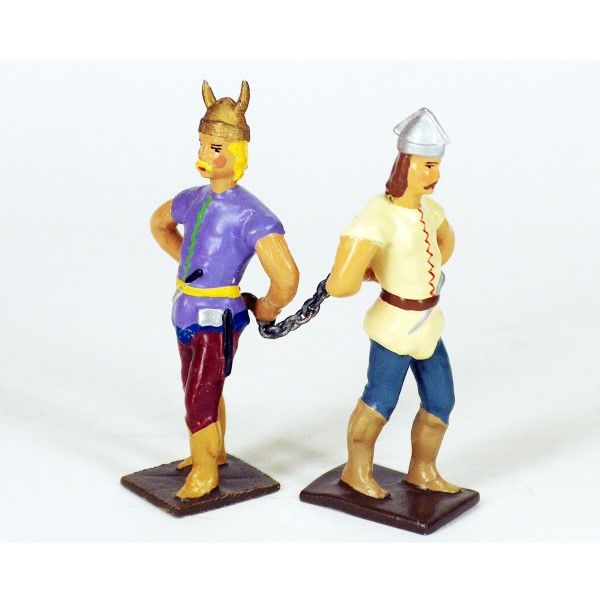 Figurines de collection au 1/35e, en alliage de plomb et d'étain, peintes à la main, représentant 2 prisonniers gaulois enchaînés