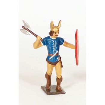 gaulois, casque ailé, avec hache en l'air et bouclier