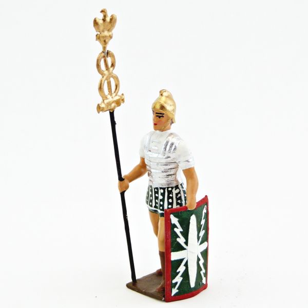 romain porte-enseigne, uniforme blanc-argent-vert , bouclier « foudres » à fon