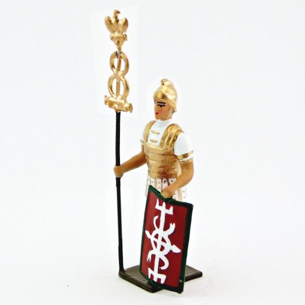 romain porte-enseigne, uniforme blanc-or-vert, bouclier « caducée » à fond rou