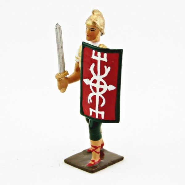 romain avec glaive et bouclier, uniforme blanc-or-vert, bouclier « caducée »