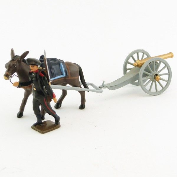 Artilleur de montagne avec un mulet tirant canon de montagne