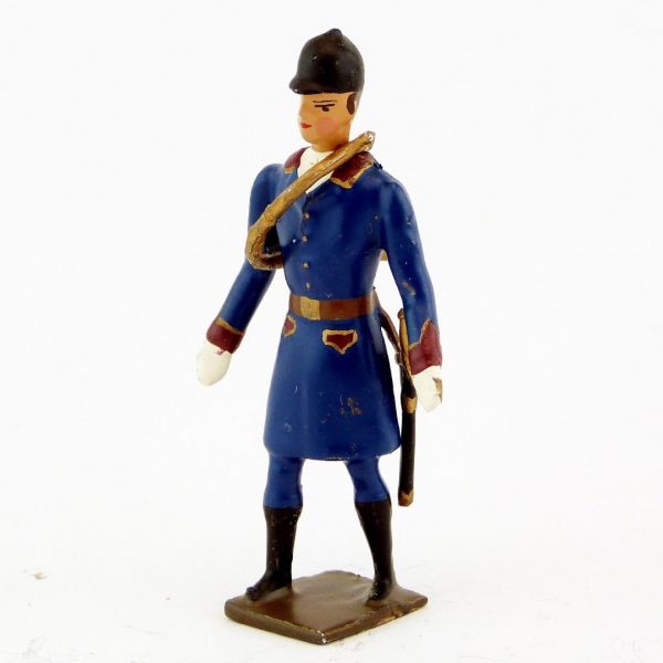Veneur, manteau bleu Drapeau à parements bordeaux, avec trompe autour du corps