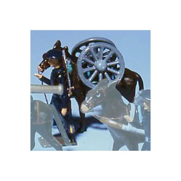chasseur alpin en tenue bleue, tirant mulet avec paire de roues sur le dos