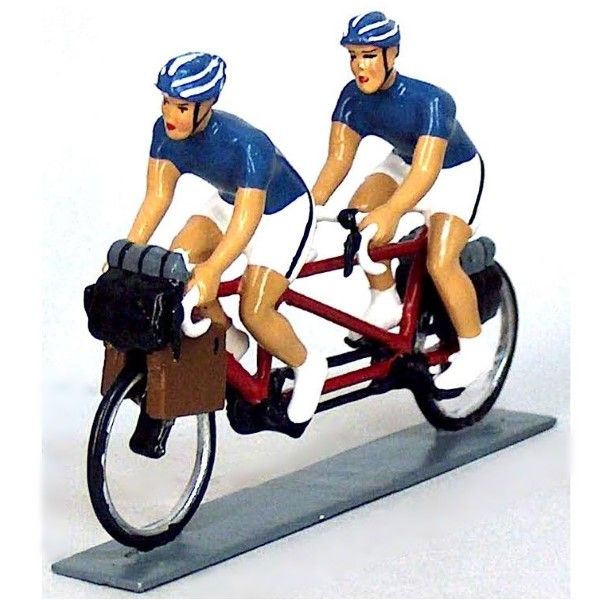 Cyclotouristes (Cyclo-randonneurs) en tandem, t-shirts bleus
