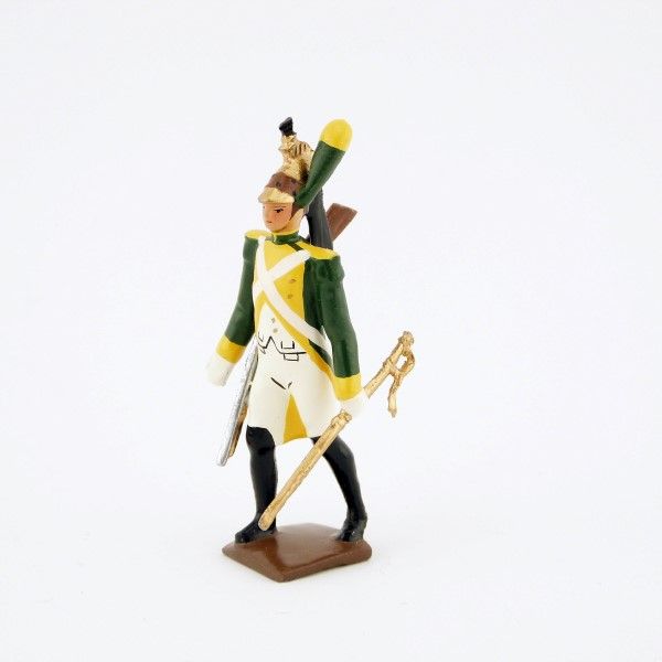 fantassin des dragons jaunes, fusil sur l'épaule sous le bras