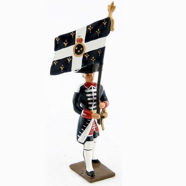 Figurine de collection au 1/35e, en alliage de plomb et d'étain, peinte à la main, représentant un drapeau des fusiliers de la garde française louis xvi (bicornes) (1789)