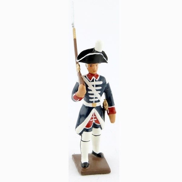 Figurine de collection au 1/35e, en alliage de plomb et d'étain, peinte à la main, représentant un fantassin des fusiliers de la garde française - louis xvi (bicornes) (1789)
