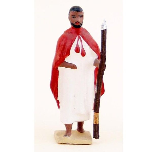 goumier en blanc cape rouge tête nue avec fusil