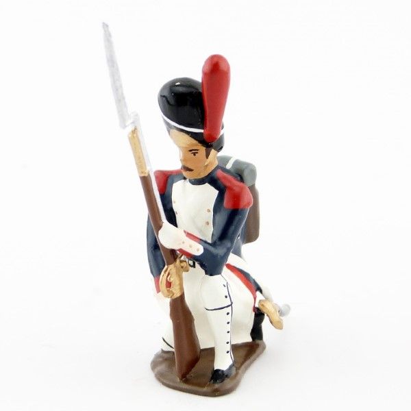 Figurine de collection au 1/35e, en alliage de plomb et d'étain, peinte à la main, représentant un grenadier de la garde à genou, fusil en joue