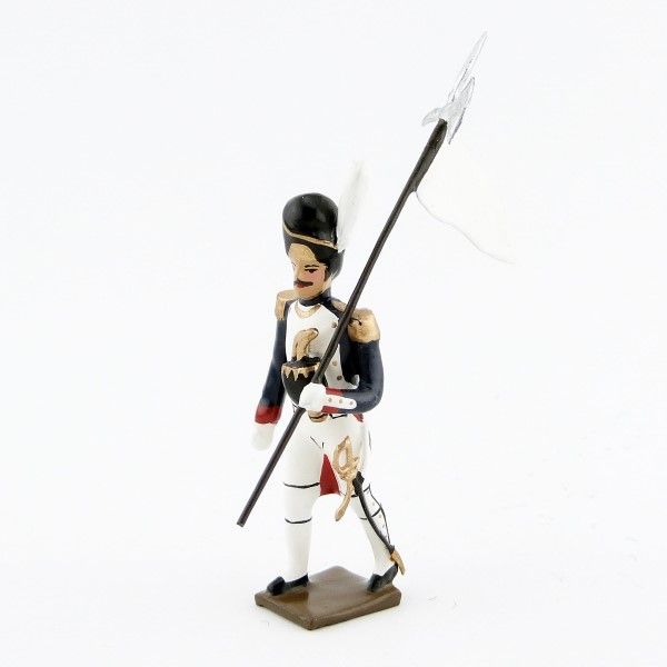 Figurine de collection au 1/35e, en alliage de plomb et d'étain, peinte à la main représentant un 3ème Porte Aigle (Blanc) des grenadiers de la garde