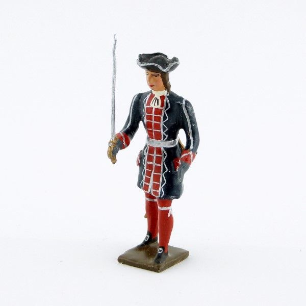 Figurine de collection au 1/35e, en alliage de plomb et d'étain, peinte à la main, représentant un officier des grenadiers de la garde française louis xiv (1670)