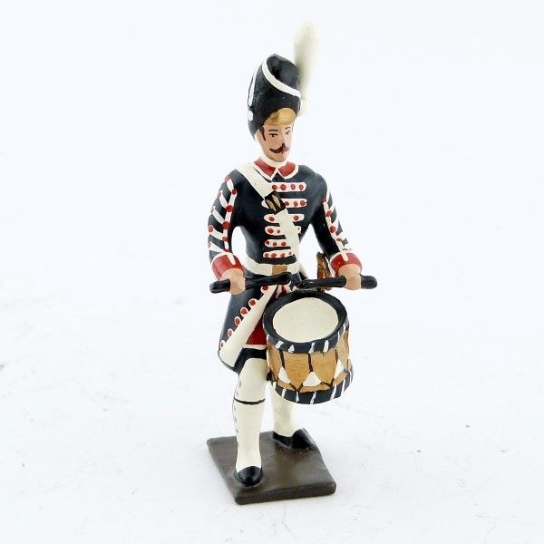 Figurine de collection au 1/35e, en alliage de plomb et d'étain, peinte à la main, représentant un tambour des grenadiers de la garde française louis xvi (1789)