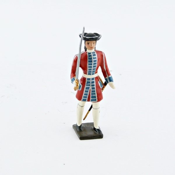 Figurine de collection au 1/35e, en alliage de plomb et d'étain, peinte à la main, représentant un officier des grenadiers de la garde suisse louis xiv (1670)