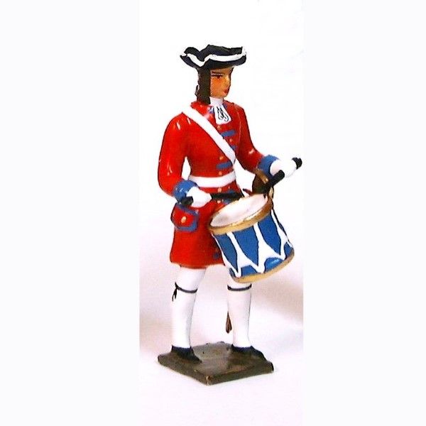 Figurine de collection au 1/35e, en alliage de plomb et d'étain, peinte à la main, représentant un tambour des grenadiers de la garde suisse louis xiv (1670)