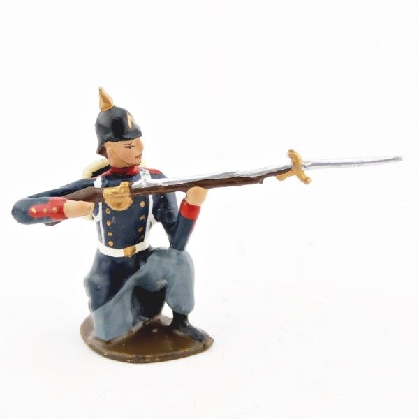fantassin de l'infanterie prussienne capote (Waffenrock) bleue à genou, fusil en joue