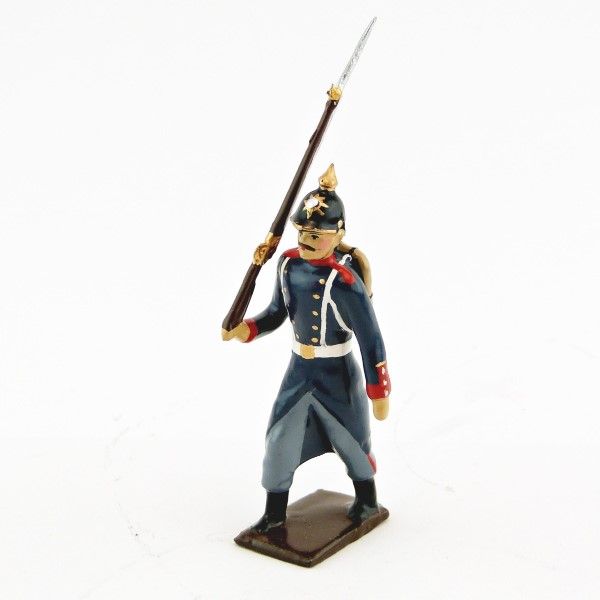fantassin de l'infanterie prussienne capote bleue, casque à pointe (pickelhaube)