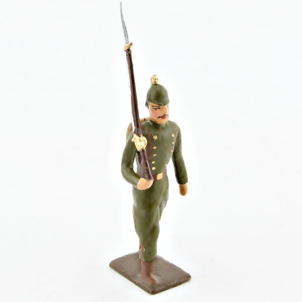 fantassin de l'infanterie prussienne en capote reseda (kaki), casque à pointe (p