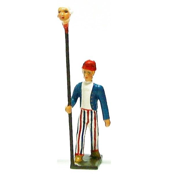 Révolutionnaire, gilet bleu, avec tête d'homme au bout d'une pique
