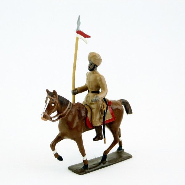 cavalier des lanciers indiens (hindous) en tenue kaki sur cheval alezan