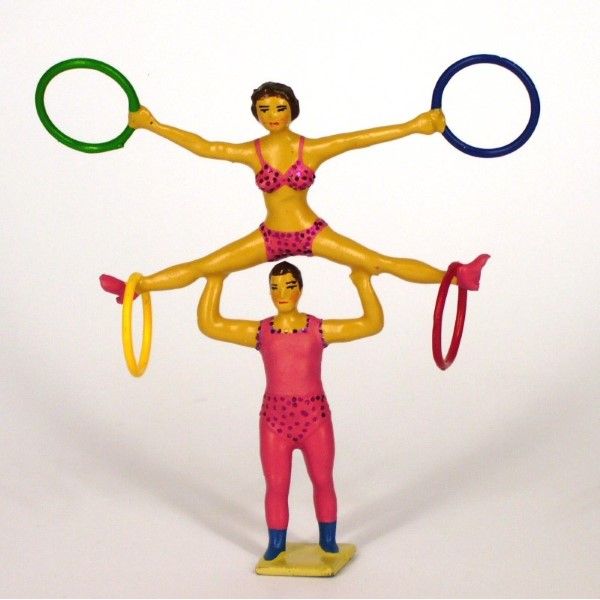 2 équilibristes (au sol) avec 4 anneaux