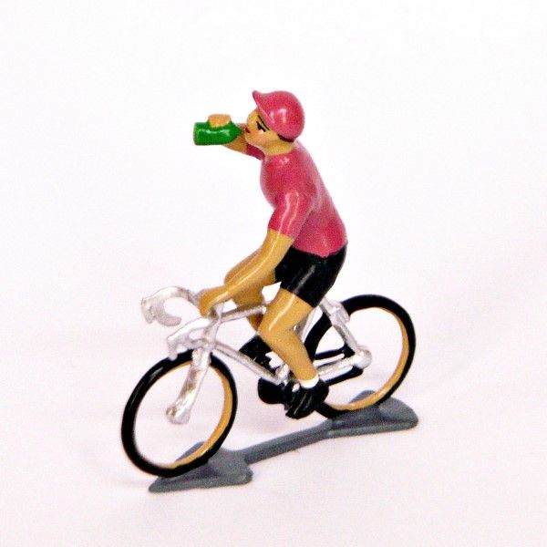 Figurine de collection au 1/35e, en métal, peinte à la main, représentant un cycliste, maillot rose buvant à la gourde