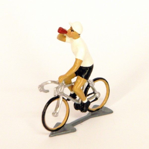Figurine de collection au 1/35e, en métal, peinte à la main, représentant un cycliste, maillot blanc buvant à la gourde