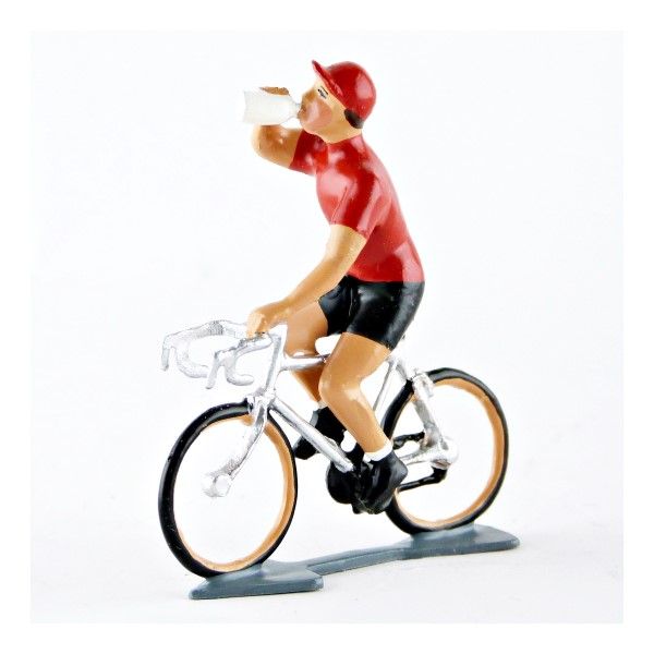 Figurine de collection au 1/35e, en métal, peinte à la main, représentant un cycliste, maillot rouge buvant à la gourde