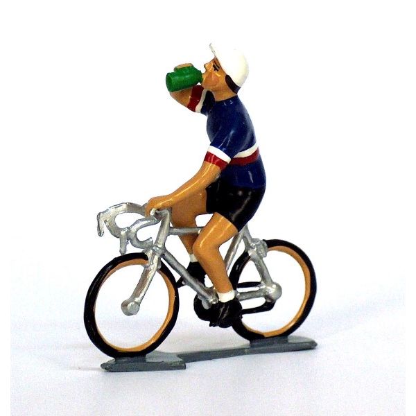 Figurine de collection au 1/35e, en métal, peinte à la main, représentant un cycliste, maillot Français buvant à la gourde