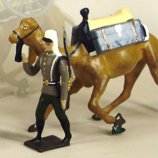 légionnaire en Tunique tirant un dromadaire avec caisses à munitions