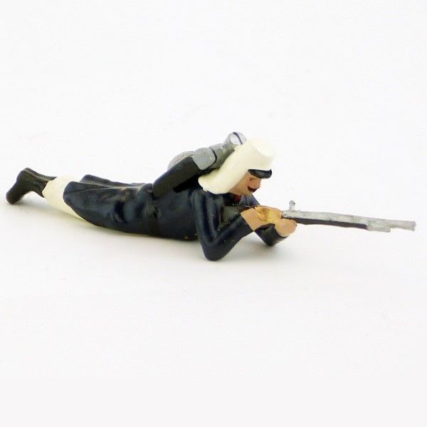 fantassin de la légion tenue bleue en capote (Maroc, 1910) couché, fusil en joue