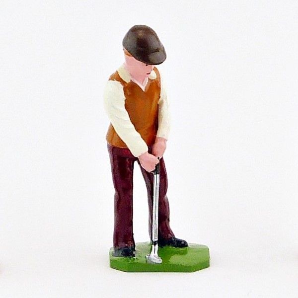 Golfeur au putting, pull marron et blanc - Golfeurs (S.E.A)