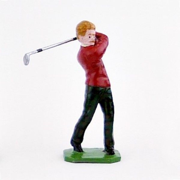 Golfeur, pull rouge, en fin de swing - Golfeurs (S.E.A)