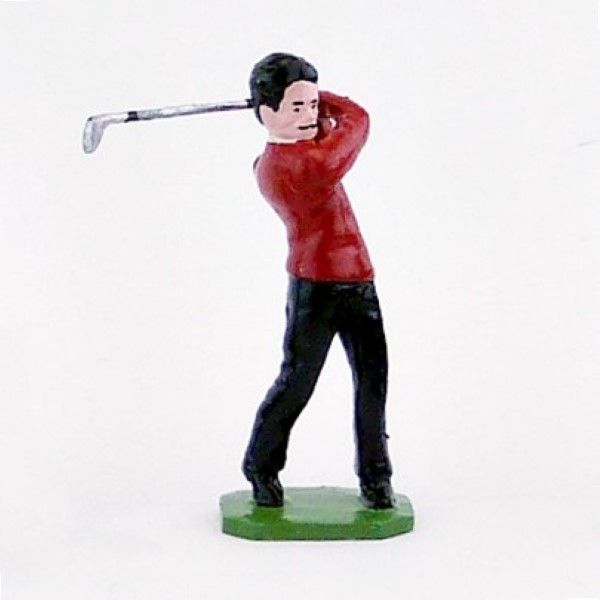 Golfeur, pull rouge, en fin de swing - Golfeurs (S.E.A)