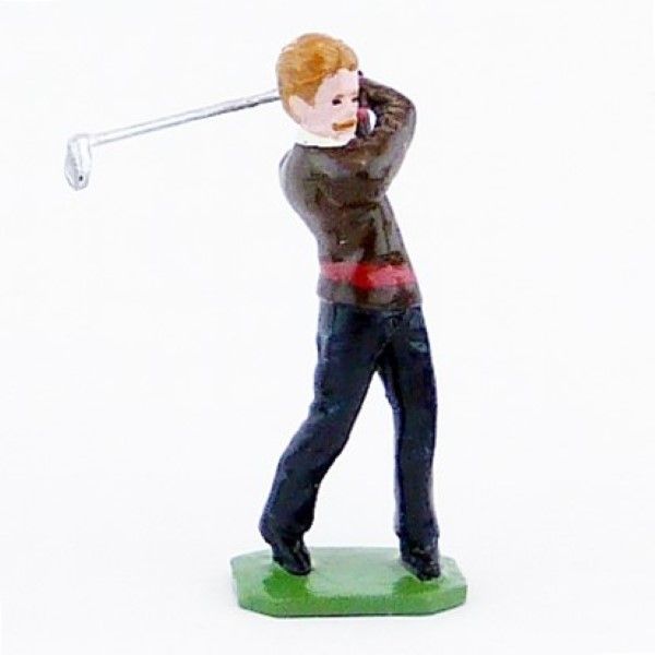 Golfeur, pull marron, en fin de swing - Golfeurs (S.E.A)