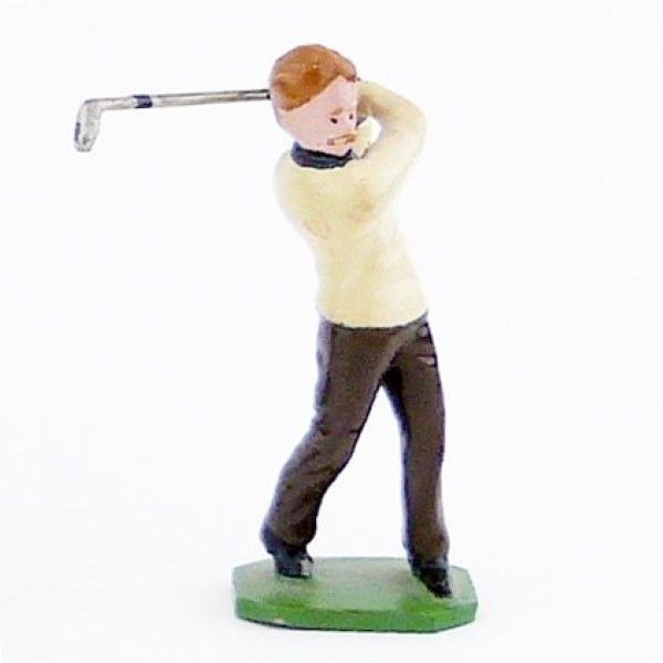 Golfeur, pull beige, en fin de swing - Golfeurs (S.E.A)