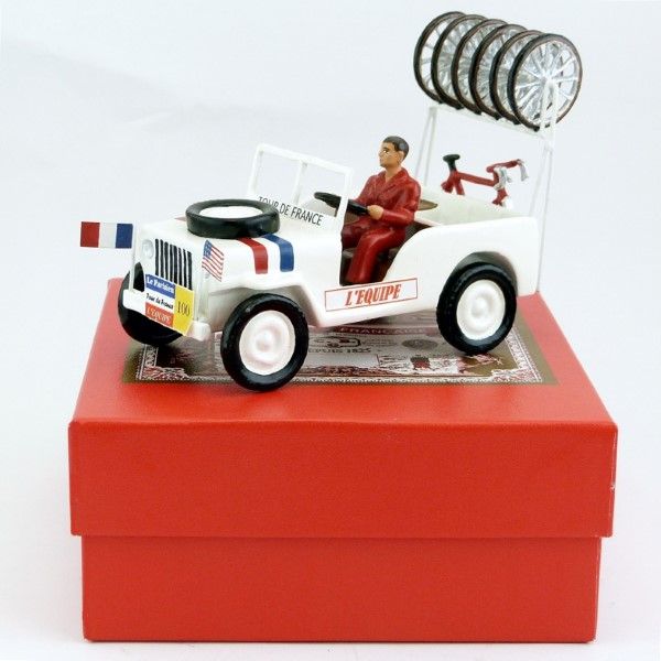 Jeep blanche Willys avec cadres et roues (+ chauffeur) en coffret rouge