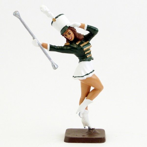 majorette (h. 10,5 cm), veste Verte, jupe blanche