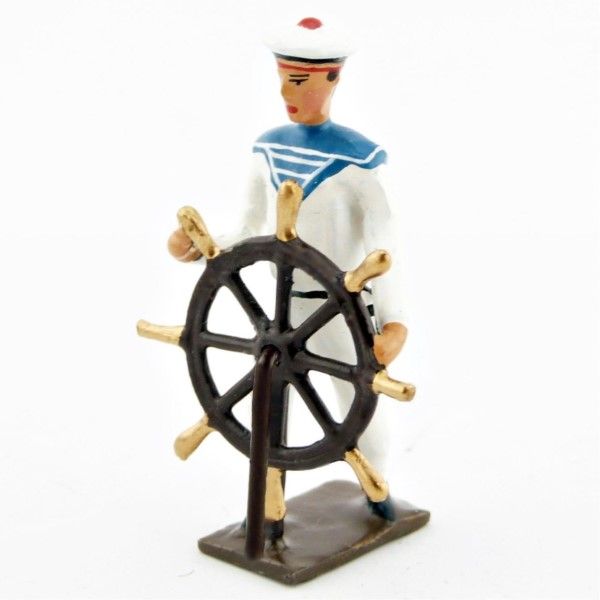 marin tenant la roue de gouvernail