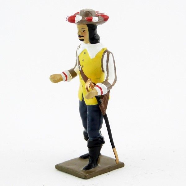 Figurine de collection au 1/35e, en alliage de plomb et d'étain, peinte à la main, représentant un mousquetaire, veste jaune