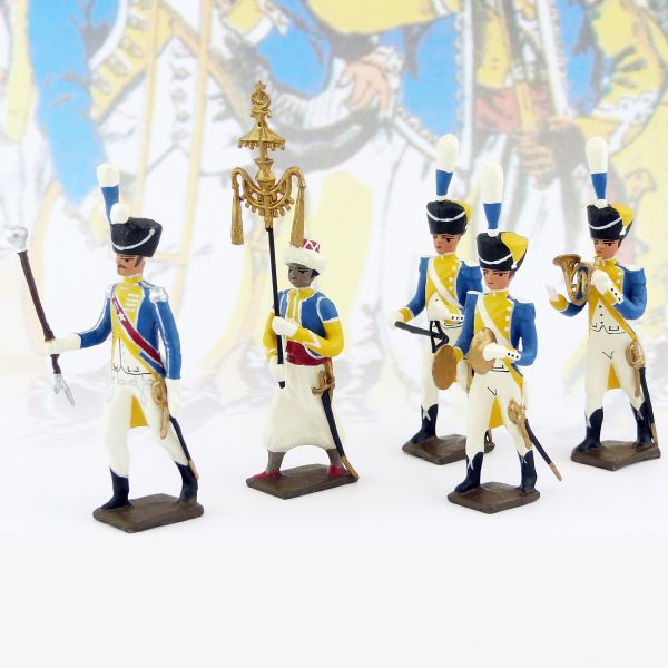lot de 5 musiciens du 3e rgt de grenadiers (1 Tambour-Major, 1 Chapeau-chinois,