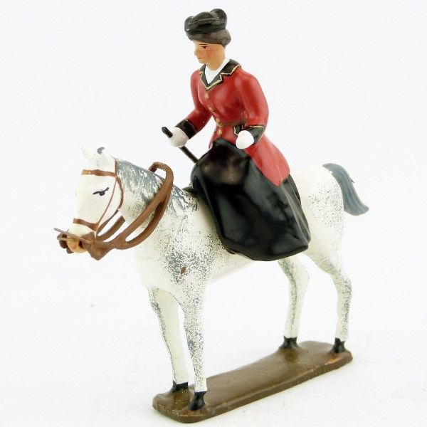 cavalière en amazone sur cheval blanc debout