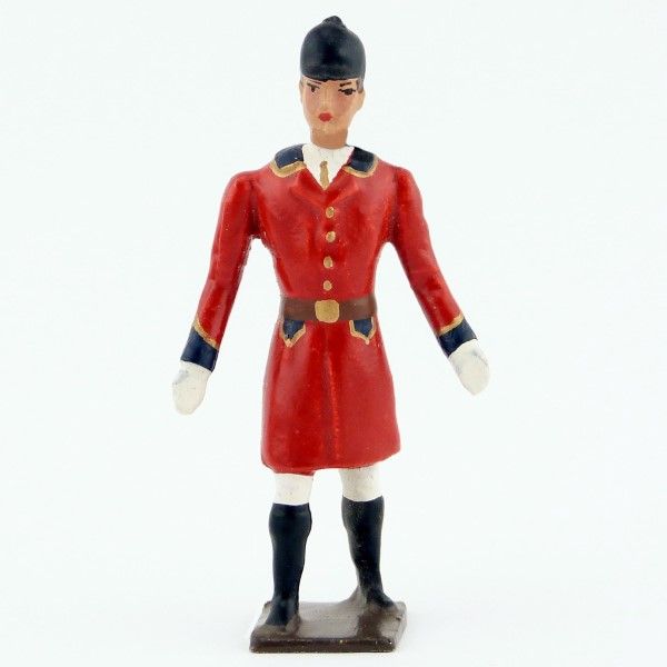 Veneur, veste rouge à parements noir, mains vides