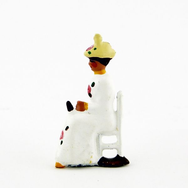 Femme assise en Blanc, jaune et crème (demi-ronde bosse)